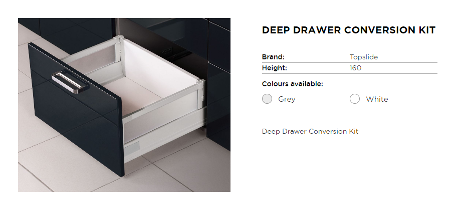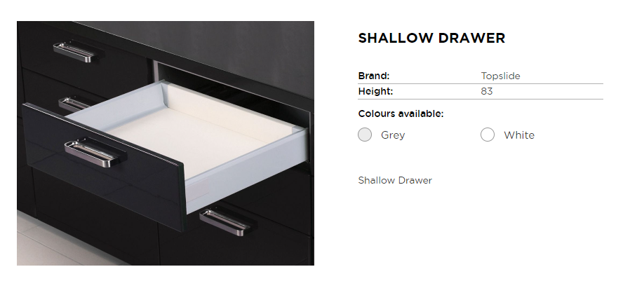 Drawers play an important part in a kitchen offering easy and quick access. Our component drawers allow you the flexibility of choosing your own base and back.