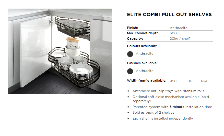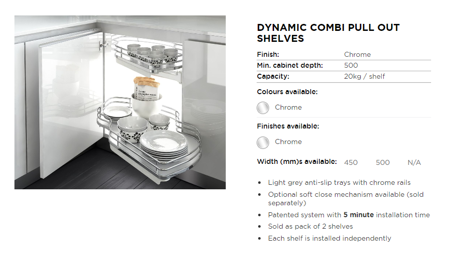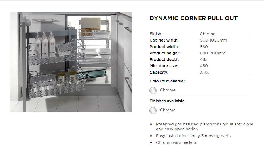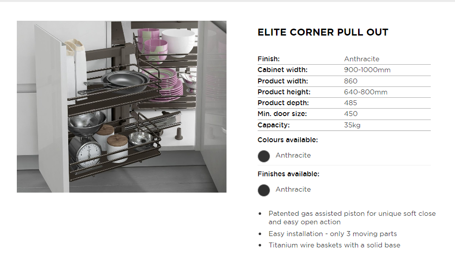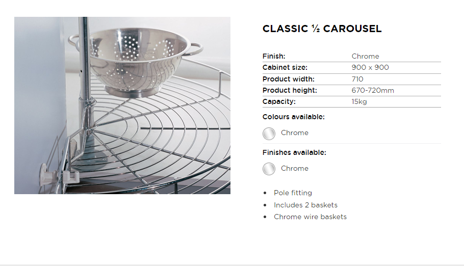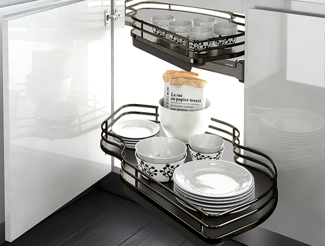 Corners are generally the most difficult to access area in the kitchen. Our corner wirework options make this a thing of the past, improving access and adding wow factor.