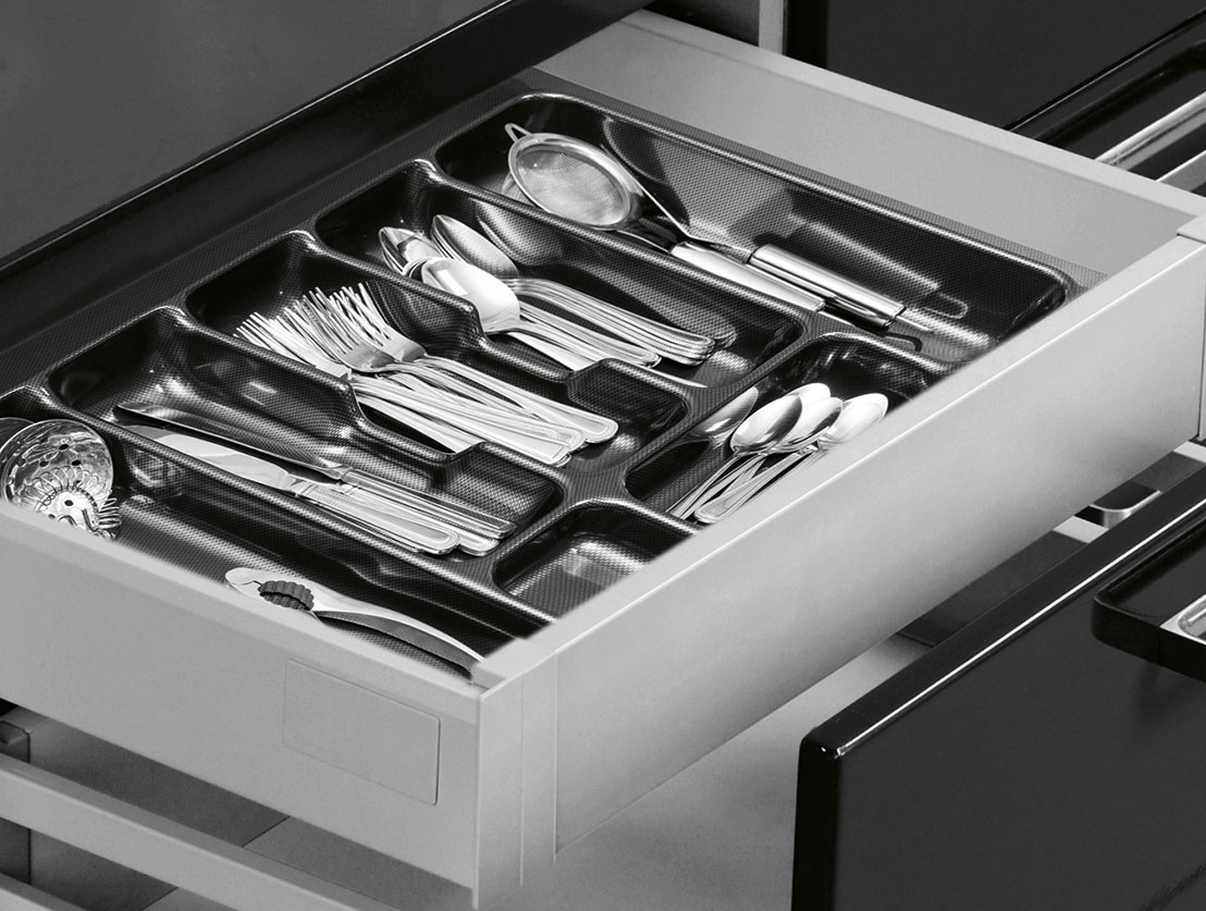 Compartmentalise and organise cutlery with our drawer storage available in different finishes and widths to suit the drawer itself.